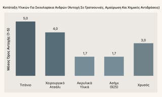 Αυτά τα υλικά είναι ανθεκτικά στη φθορά του χρόνου και την αμαύρωση, είναι πολύ εύκολα στον καθαρισμό τους. Το χρώμα τους συνήθως γίνεται με επίστρωση PVD, που είναι η πιο ανθεκτική μέθοδος χρωματισμού διαθέσιμη.