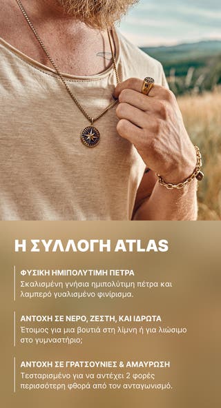 Atlas | Χρυσαφί Ατσάλινο Κολιέ με Περιστρεφόμενο Μενταγιόν Κόσμος Αζουρομαλαχίτη