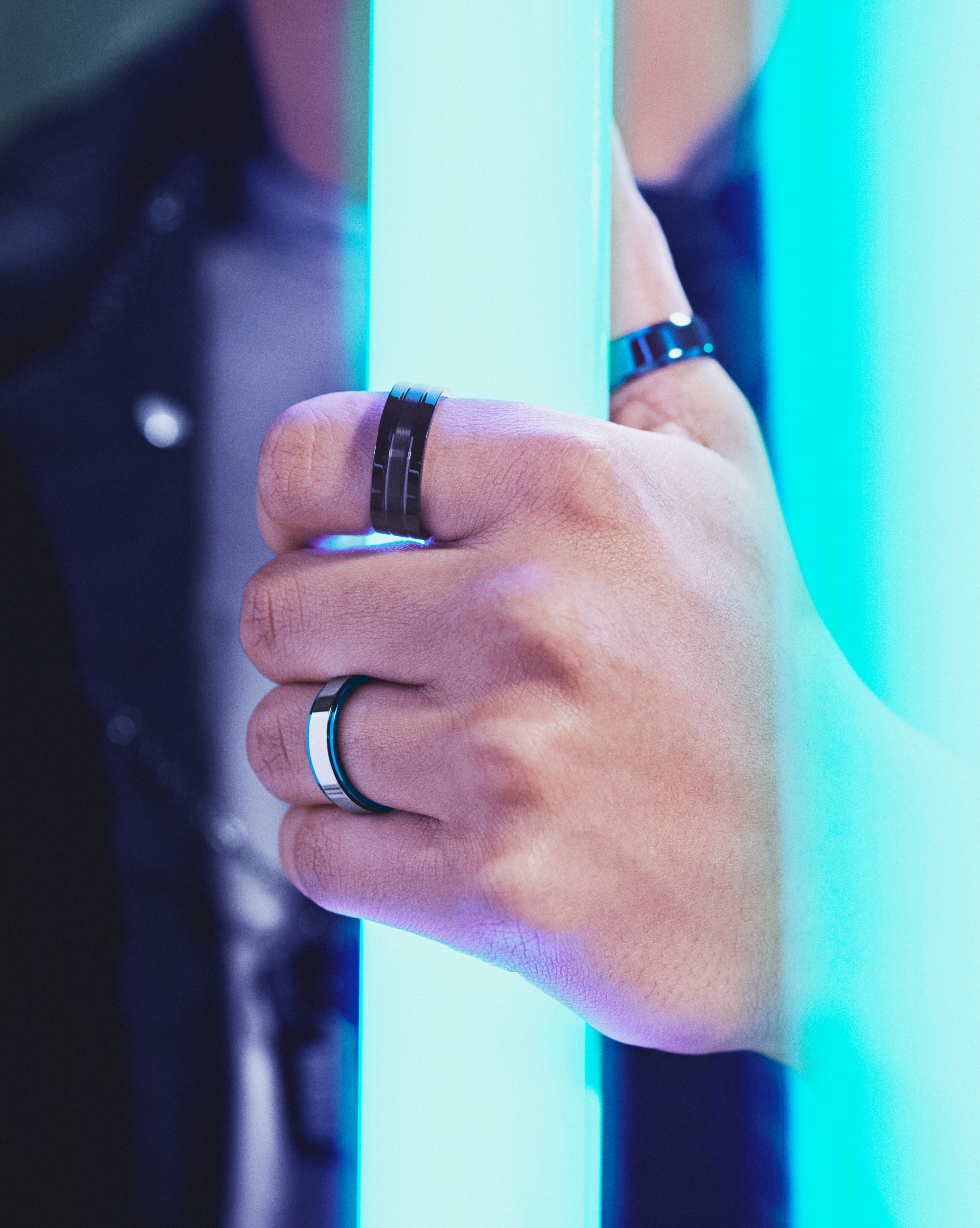 Ferrum | 8 mm Flat Double-Grooved Γυαλισμένη & Βουρτσισμένη Μπλε Ατσάλινη Βέρα