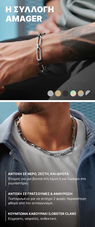 Όταν φοριέται, οι ορθογώνιοι κρίκοι αντανακλούν το φως χωρίς υπερβολή, σχηματίζοντας μια καθαρή γραμμή στον λαιμό. Ο ουδέτερος τόνος του ατσαλιού ταιριάζει με casual πουκάμισα, άλλα κολιέ ή υφασμένα ρούχα και δίνει μια συγκρατημένη, σύγχρονη όψη. Η καθαρή γεωμετρία λειτουργεί μόνη της ή σε συνδυασμό με άλλα κολιέ για πολυεπίπεδο αποτέλεσμα.