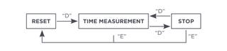 Χρονομέτρηση με χρονογράφο: Ο χρονογράφος μπορεί να ξεκινήσει και να σταματήσει με το κουμπί D. Με το πάτημα του κουμπιού E ο χρονογράφος μηδενίζεται και οι δείκτες δευτερολέπτων, λεπτών και ώρας του χρονογράφου επιστρέφουν στο 0.