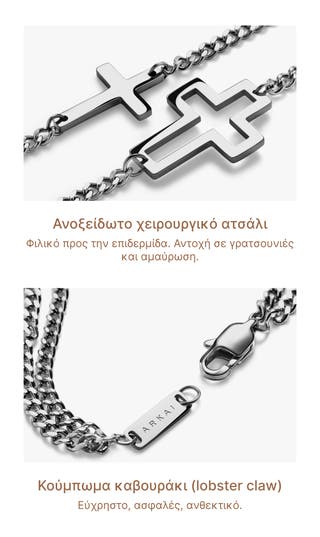 Επιλογή χρώματος - Unity | Ασημί Ατσάλινο Βραχιόλι με Διπλή Αλυσίδα Χεριού και Κρεμαστά Σταυρουδάκια
