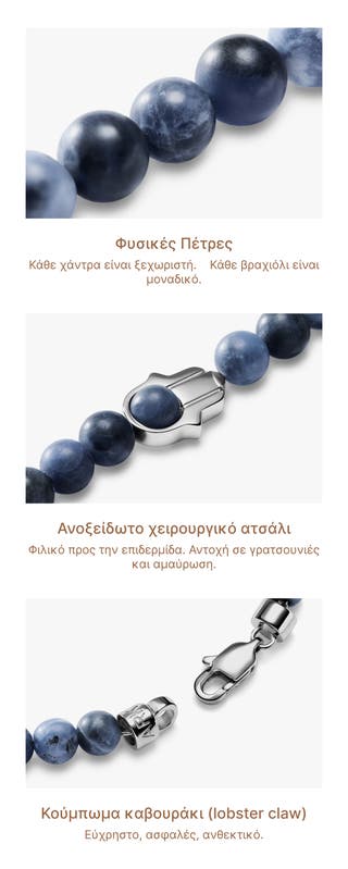 - Ανδρικό βραχιόλι με φυσικές πέτρινες χάντρες και Χέρι Χάμσα